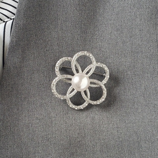 フラワー パールブローチ|ラインストーン 花モチーフ シルバーカラー 上品 華やか フォーマル セレモニー 結婚式 卒業式 入学式 式典 お呼ばれ ジャケット エレガントブローチ MZL-01