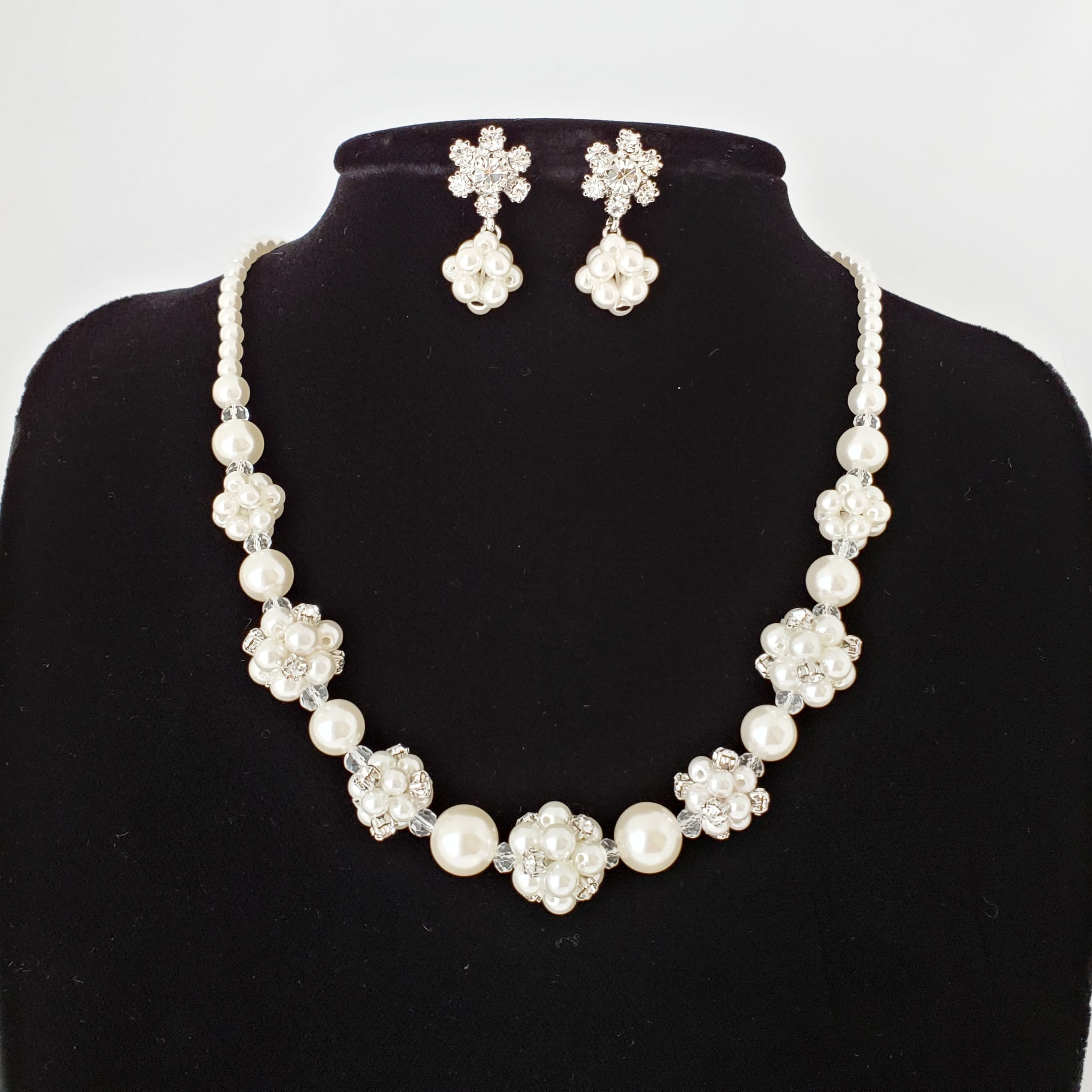 華やかなパール&ラインストーン ネックレスとイヤリングセット 結婚式 二次会 卒業式 入学式 フォーマル アクセサリー KCS-01P KCP-01 KCE-01