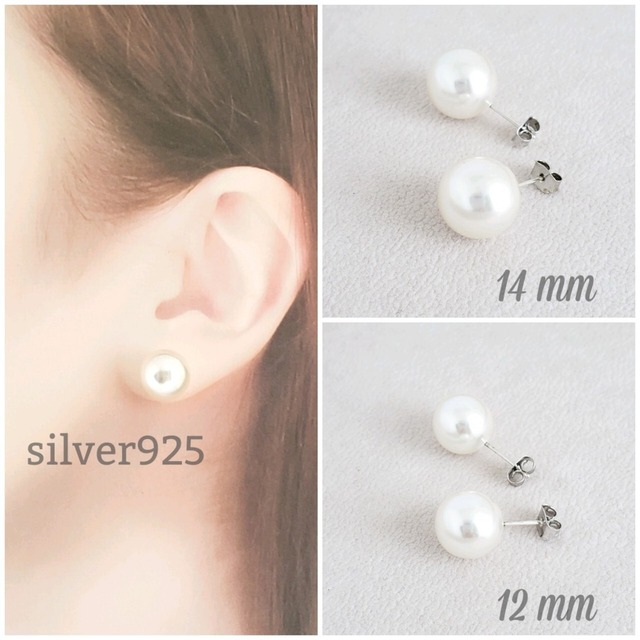 残り少 silver925◆シンプル 一粒 パール ピアス (14ミリ) CEN-02