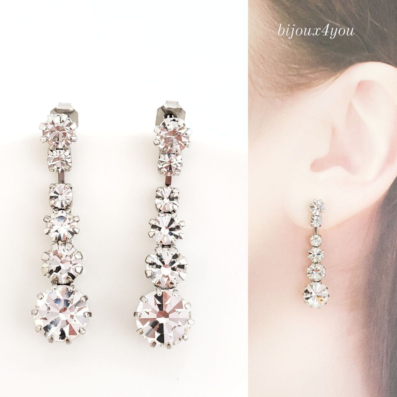 華やかな輝きが魅力のラインストーンイヤリングです。