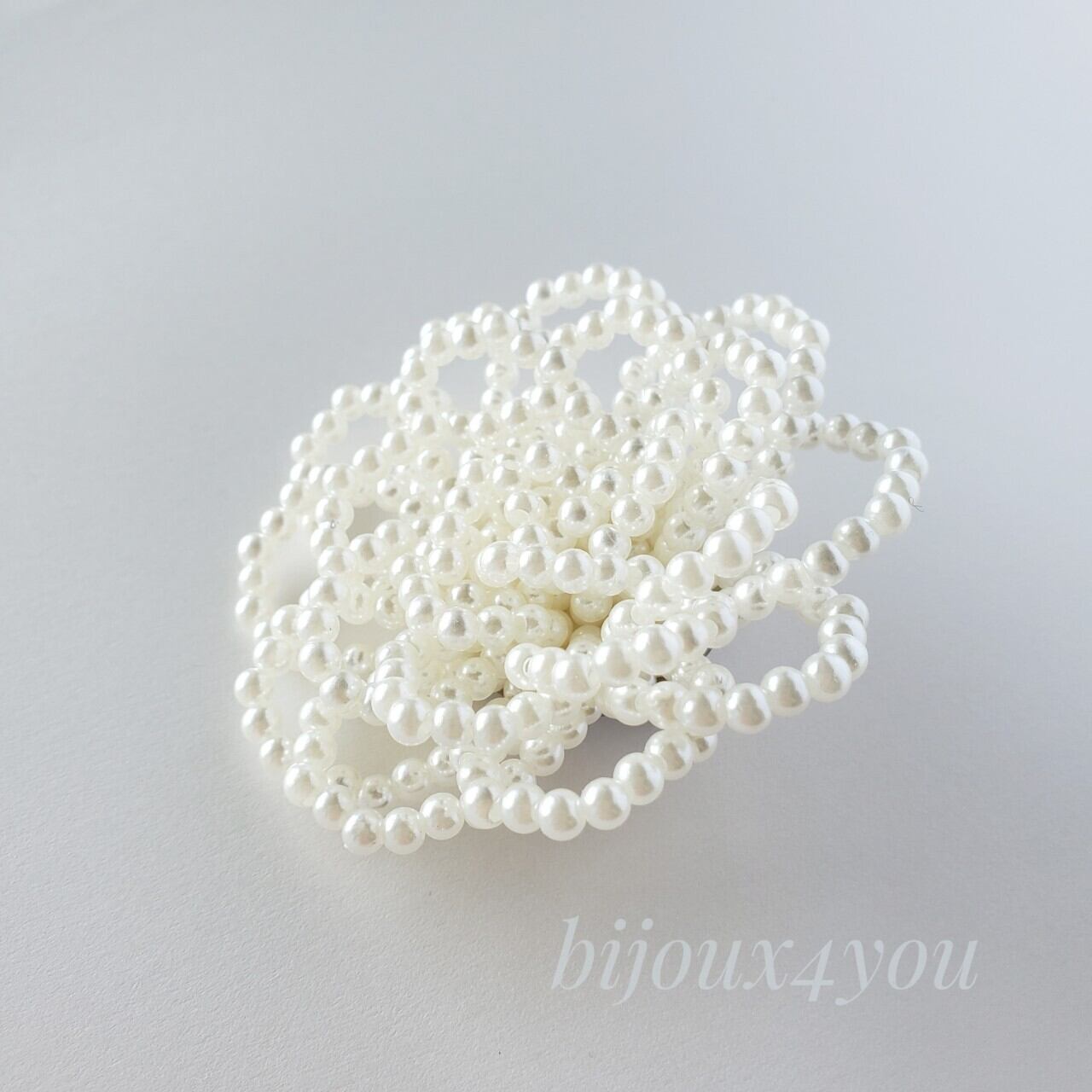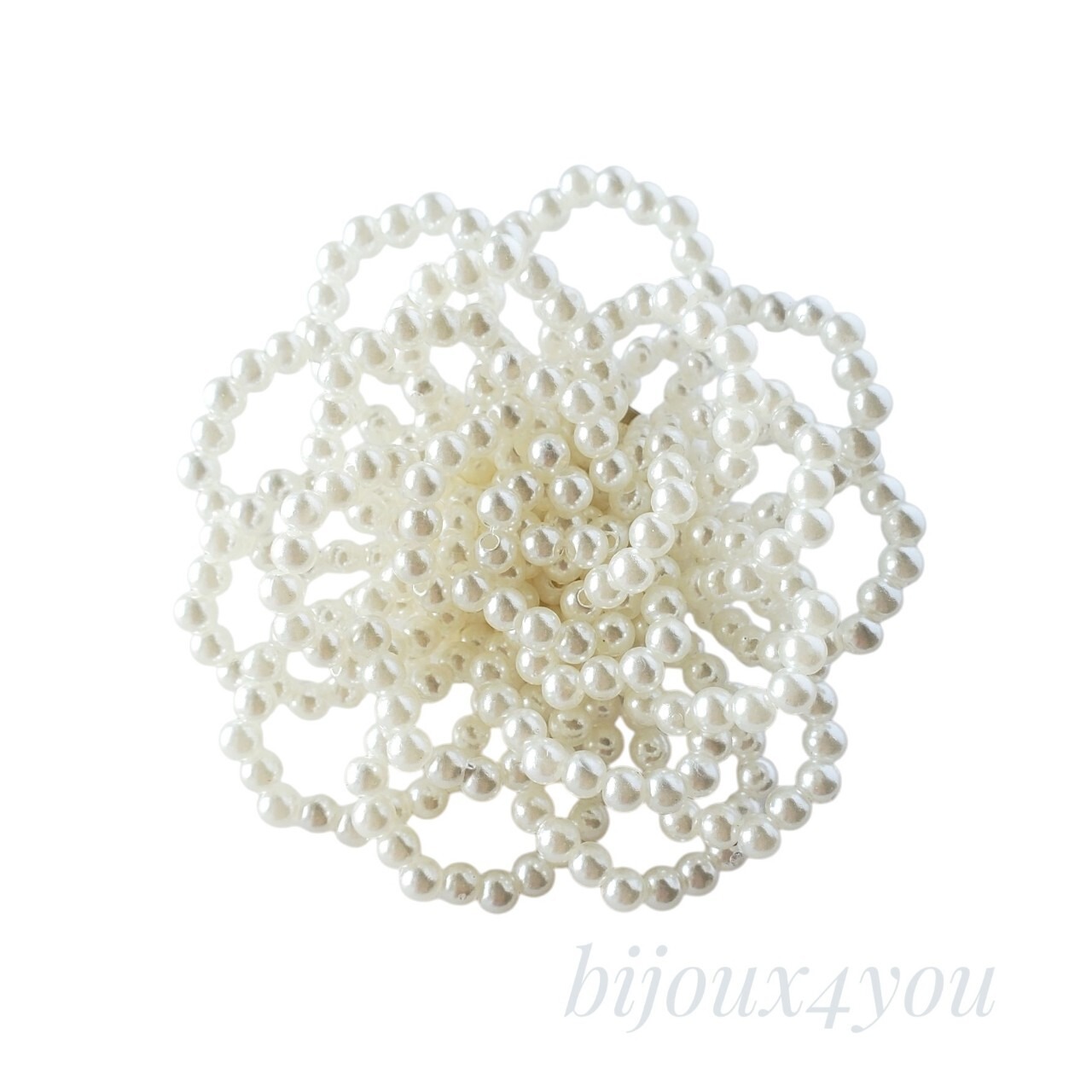 繊細に編み上げられた樹脂パールが、まるで一輪の花のように咲き誇る美しいコサージュです。