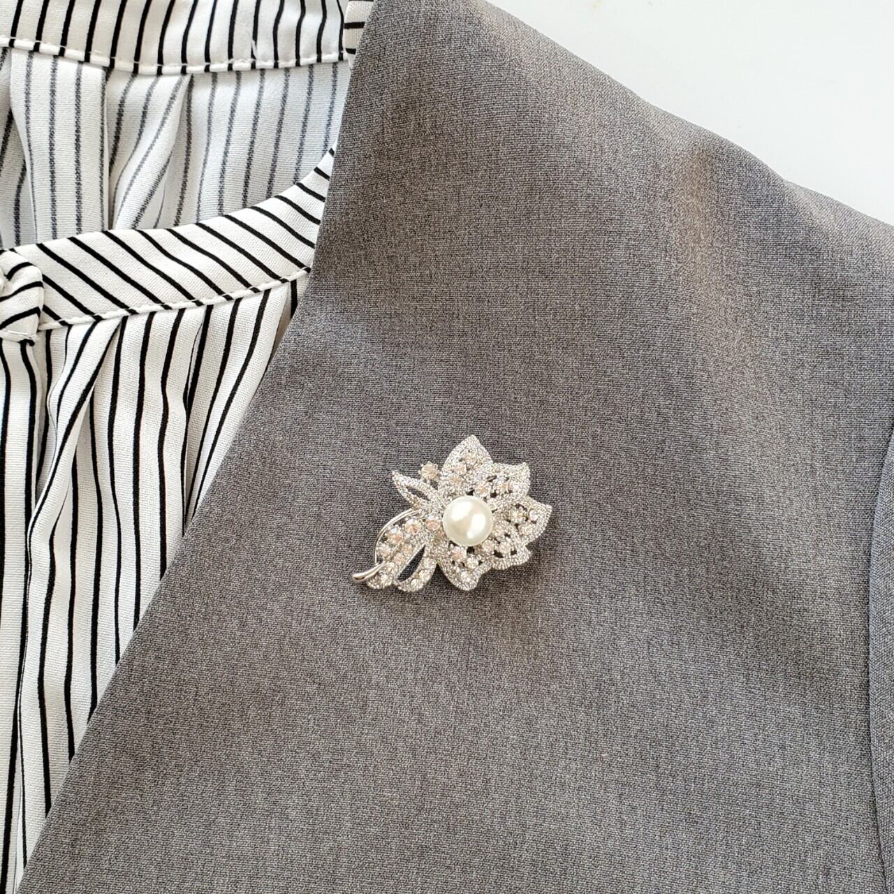 ジャケットやコート、ワンピース、ストール留めとしても使いやすく、フォーマルからきれいめカジュアルまで幅広く活躍します。