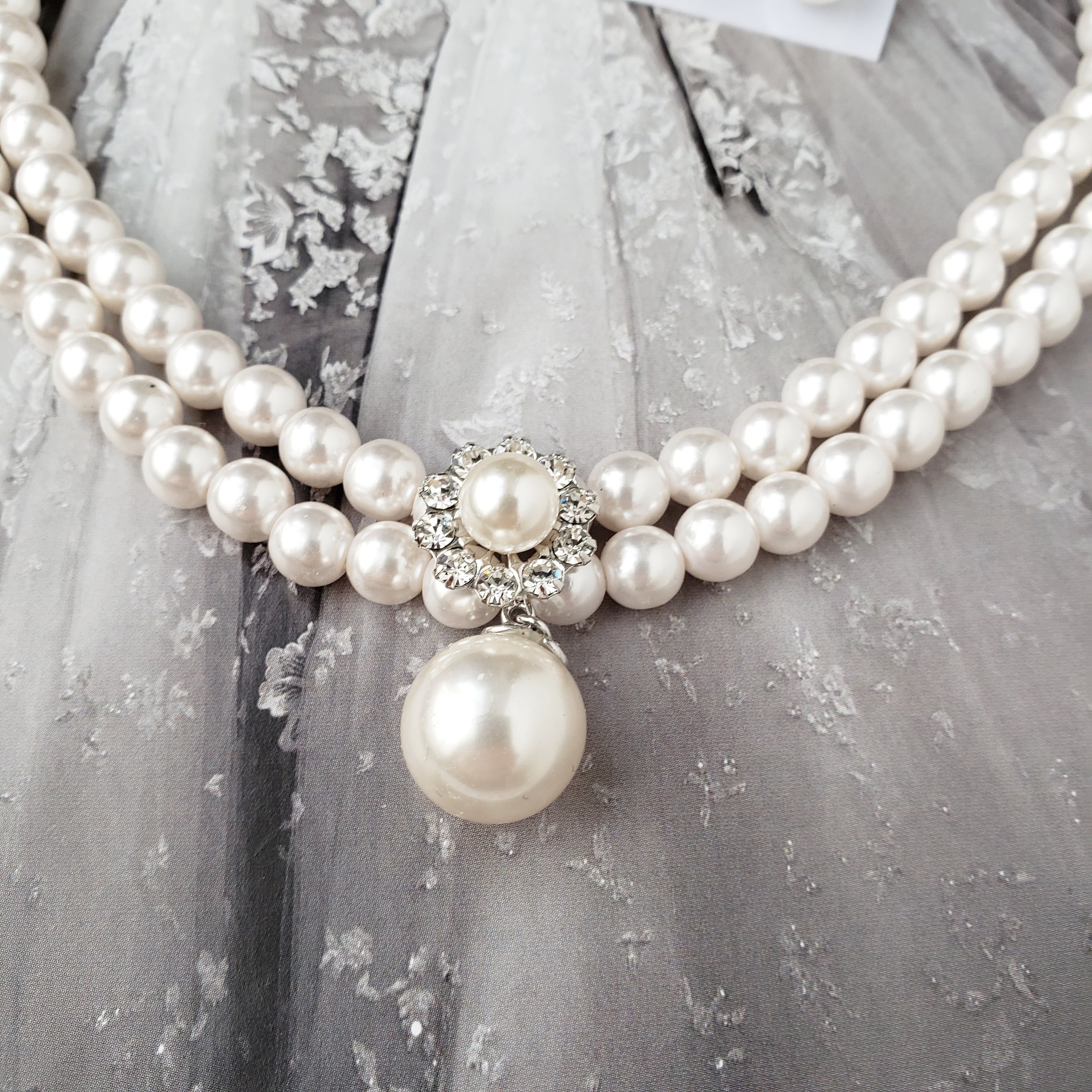 大人の女性に似合う 2連パールネックレス 大粒パールペンダント付き フォーマル アクセサリー 結婚式 披露宴 入学式 卒業式 冠婚葬祭 上品 30代 40代 50代 エレガント おしゃれ ホワイト 真珠風 レディース ギフト プレゼント KCS-02