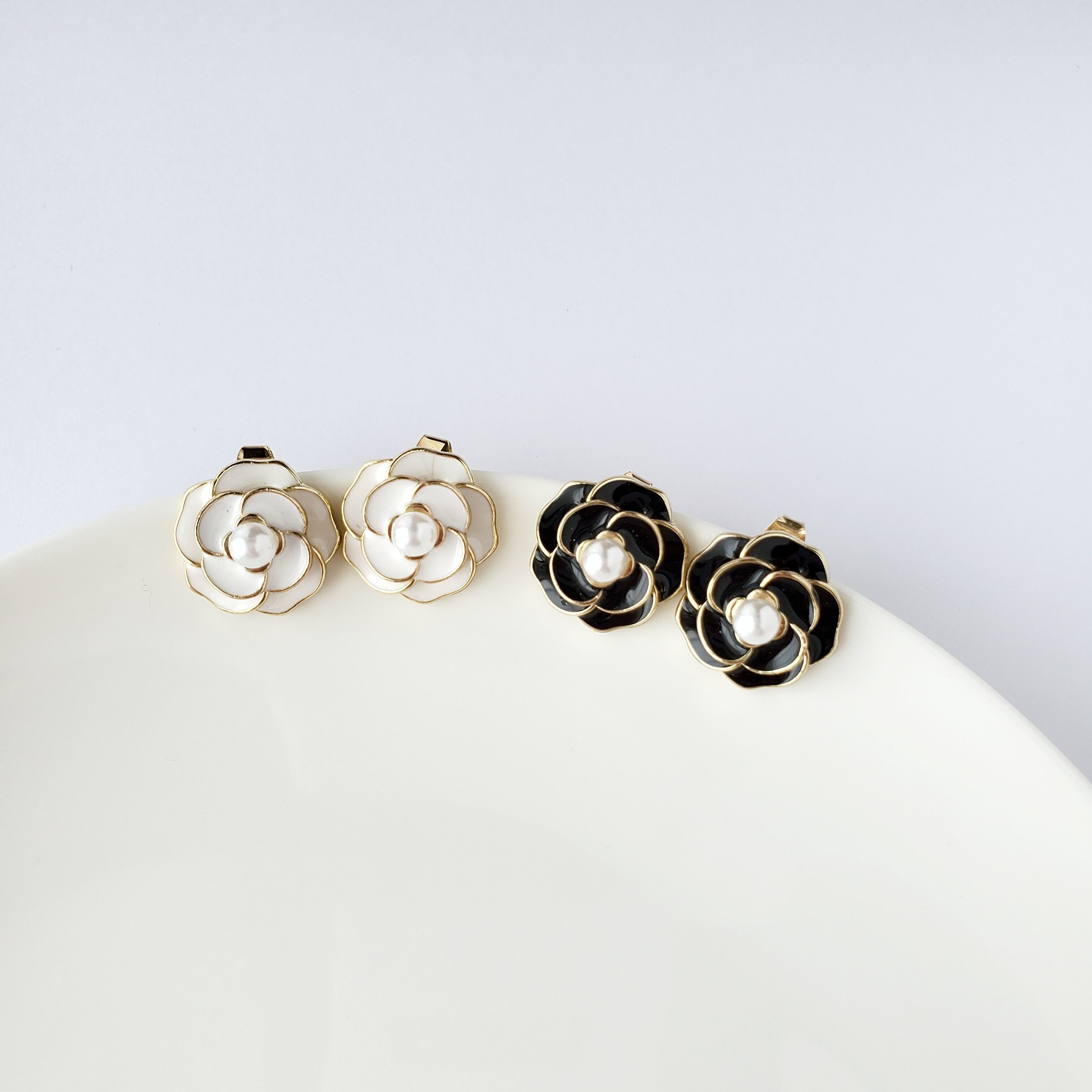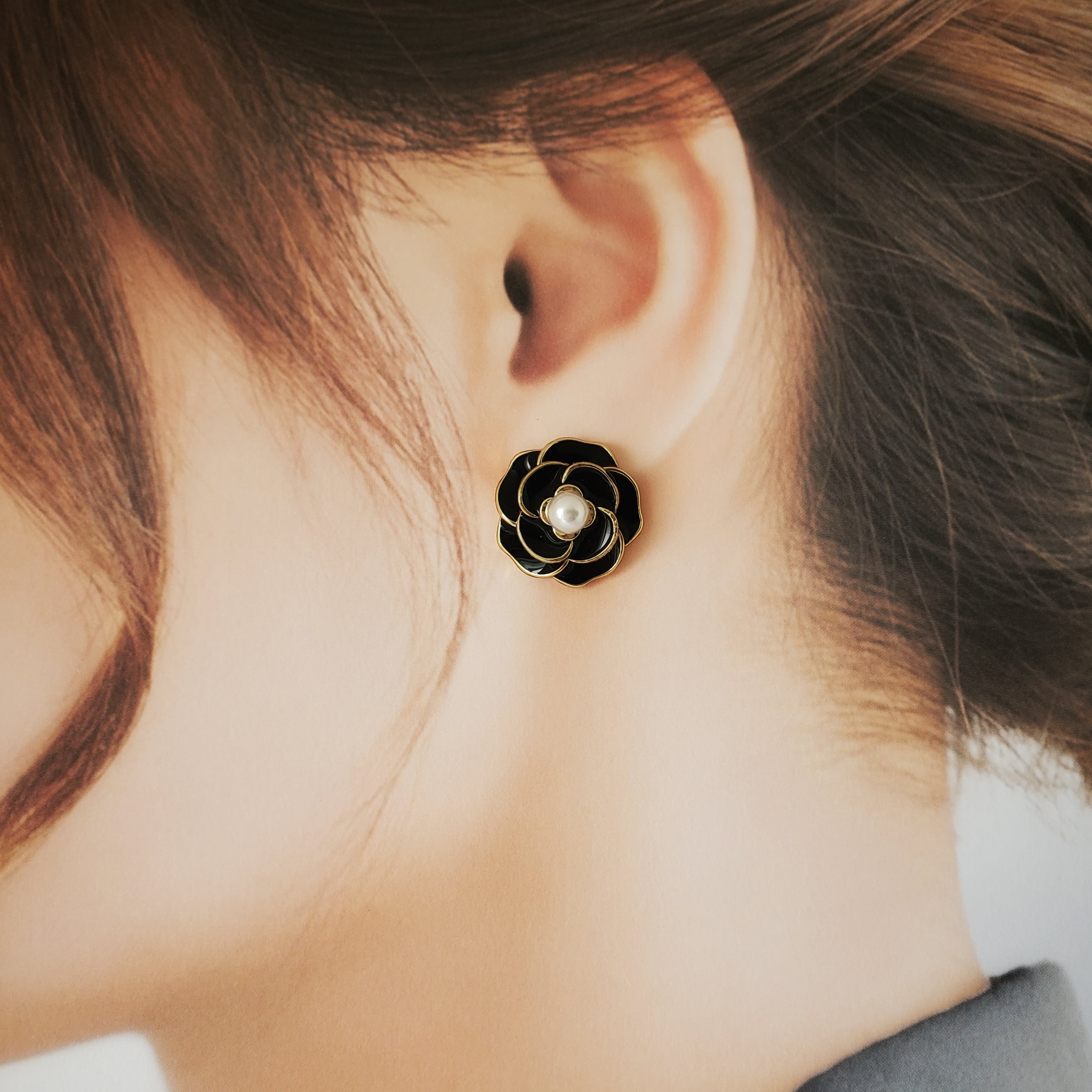 華やかに輝くカメリア フラワー ピアスは、女性らしさを引き立てます。