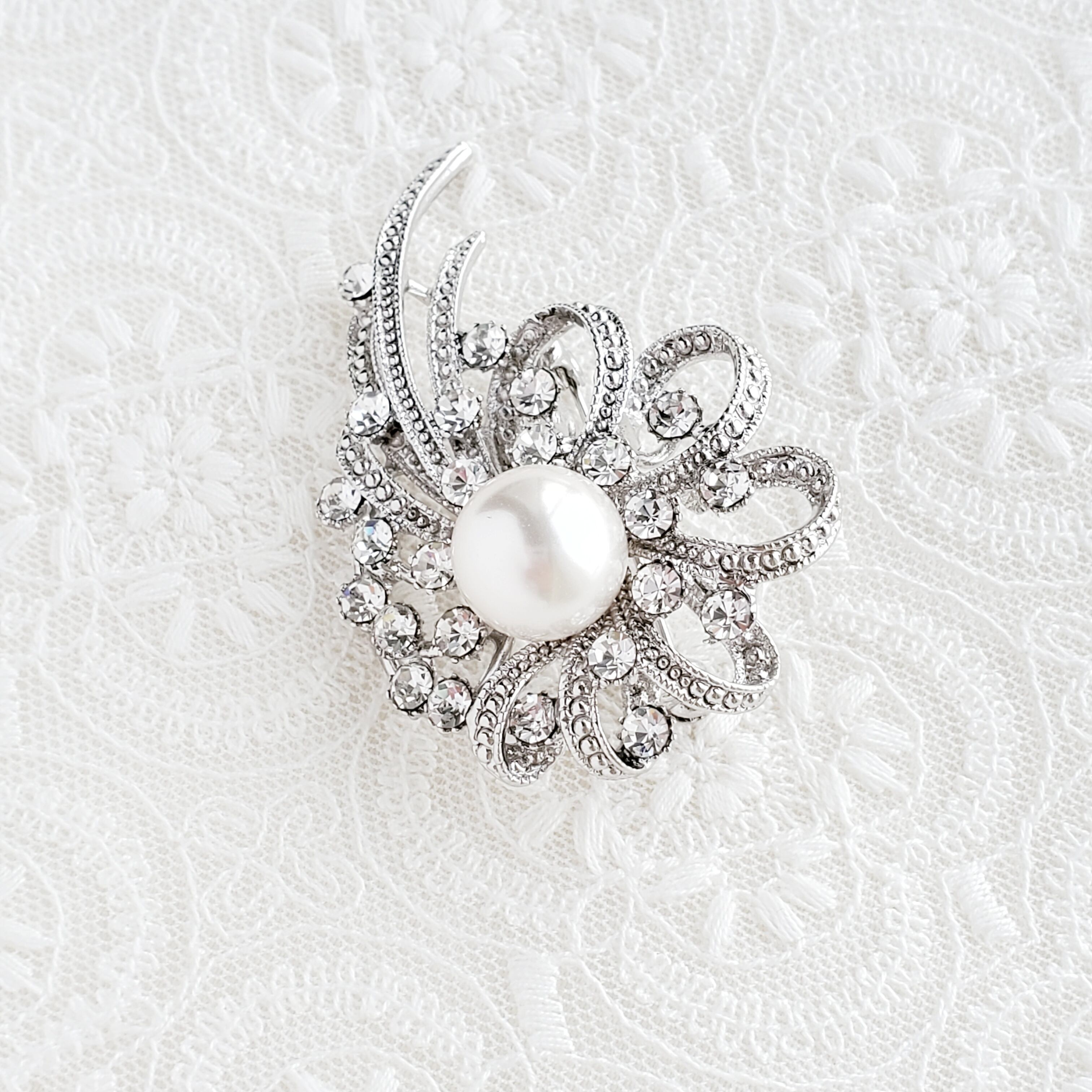 結婚式 卒業式 入学式 パール ラインストーン ブローチ SDE-04