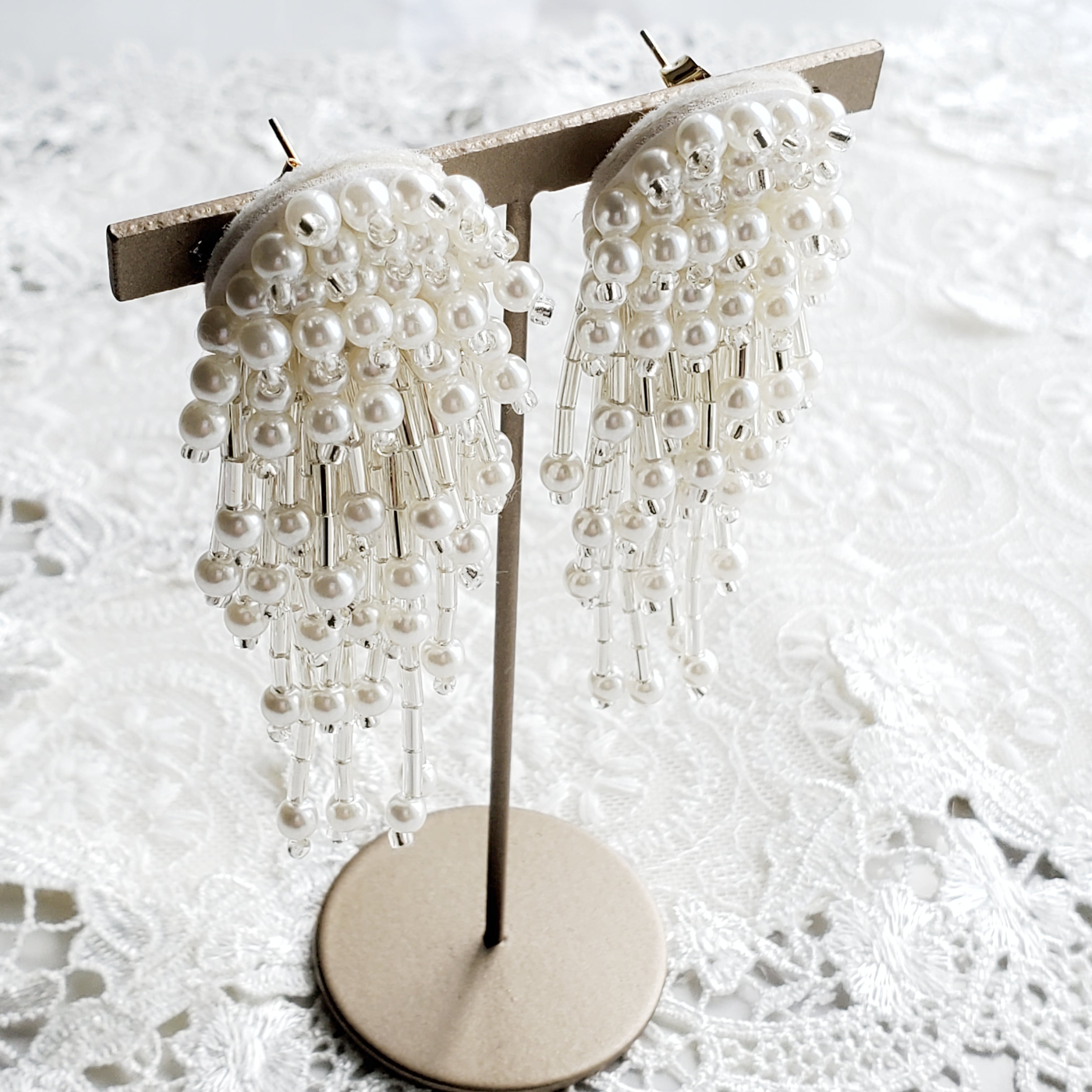 ビーズ パール ピアス シャワー フリンジ 披露宴 結婚式 MOP-02
