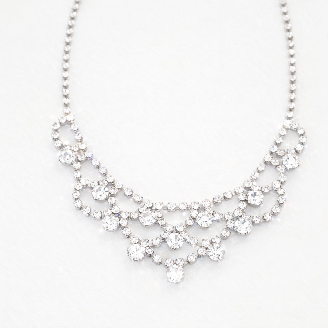 輝くクリスタルラインストーンが、清楚な花嫁様を更に美しく輝かせるブライダルネックレスです。